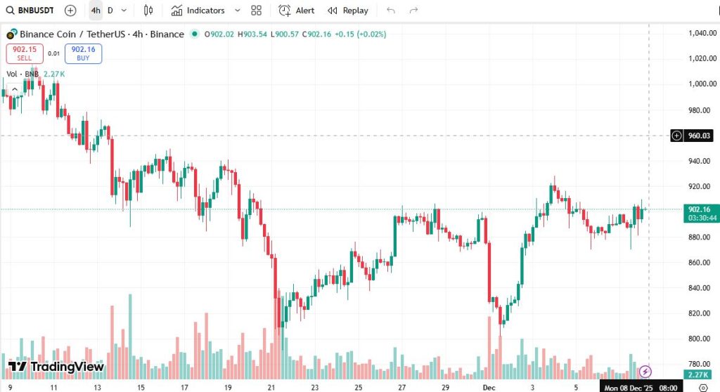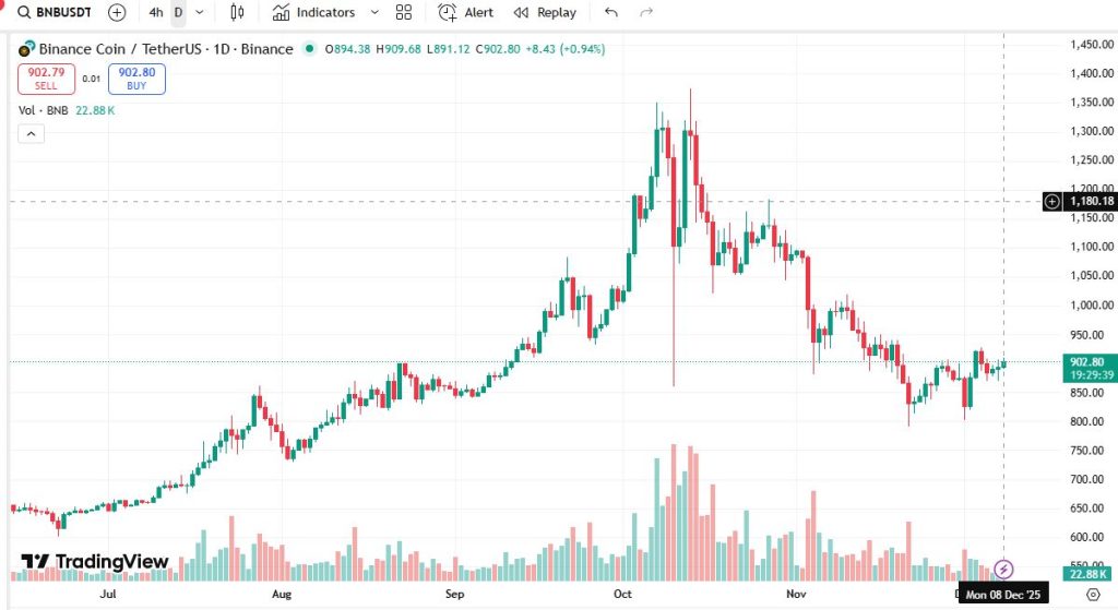 تحلیل تکنیکال بایننس کوین (BNB) با قیمت فعلی 904.23 USDT.