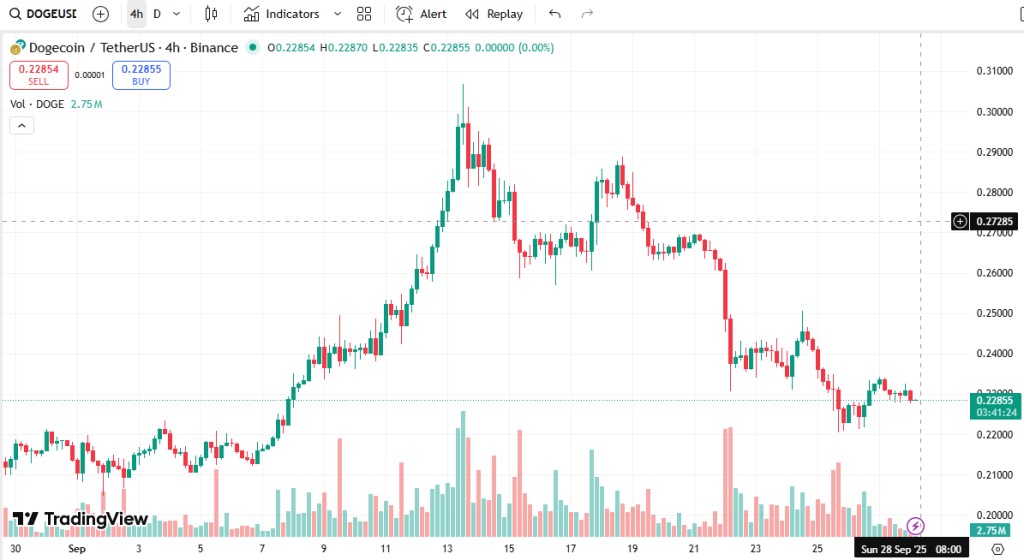 تحلیل تکنیکال دوج کوین با قیمت فعلی 0.2285 USDT.