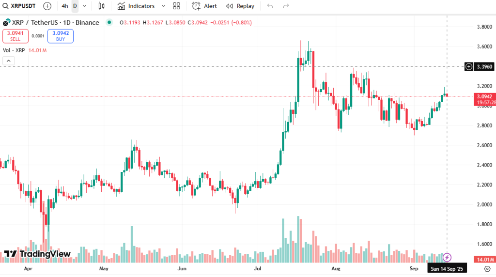 تحلیل تکنیکال ریپل با قیمت فعلی 3.09 USDT.