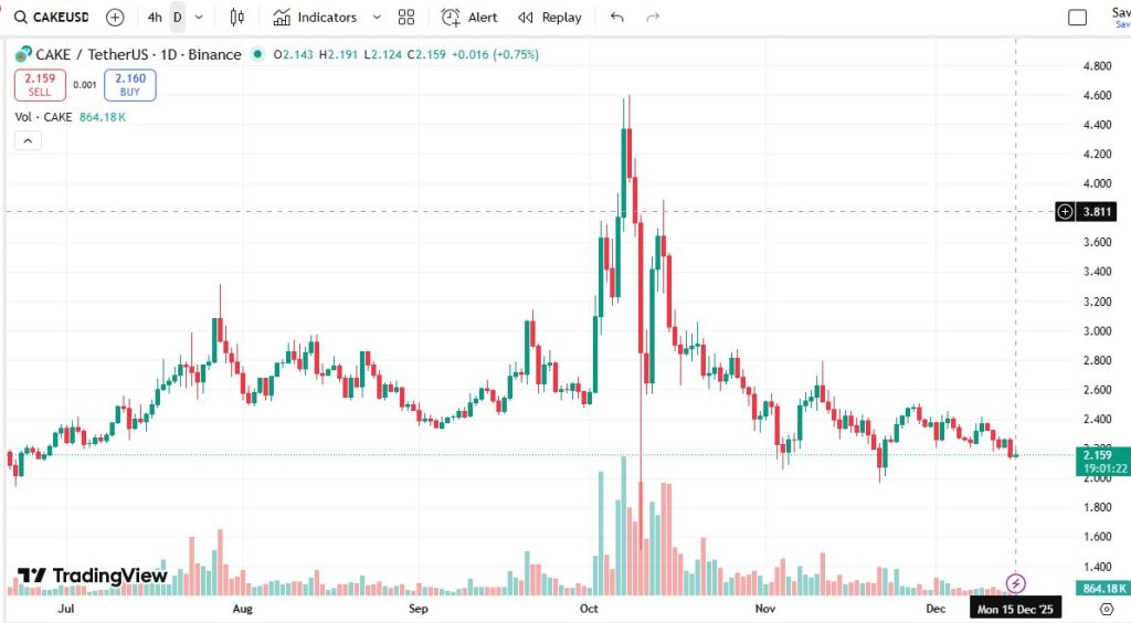 تحلیل تکنیکال کیک PancakeSwap (CAKE/USDT) قیمت فعلی 2.15 USDT.
