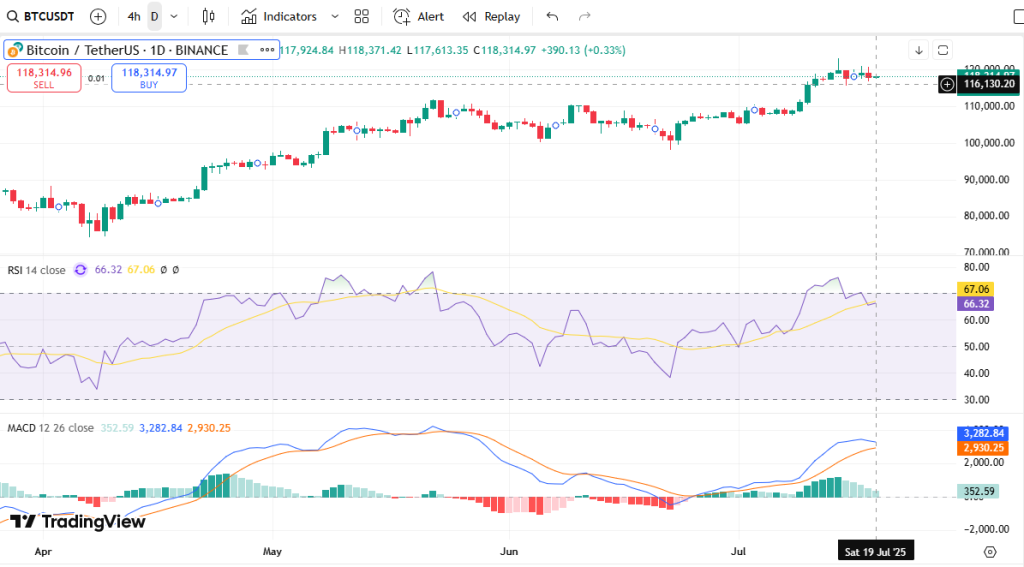 تحلیل تکنیکال بیت کوین با قیمت فعلی 118,333.24 USDT.