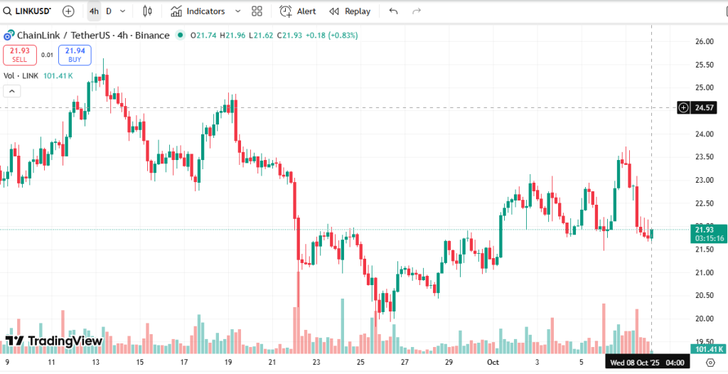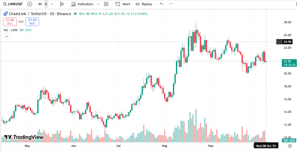 تحلیل تکنیکال چین لینک (LINK) با قیمت فعلی 21.95 USDT.